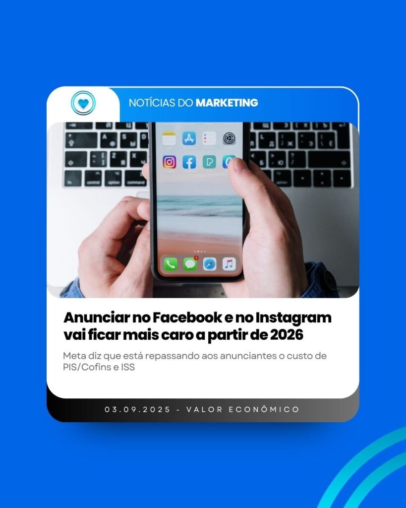 Segundo matéria publicada no Valor Econômico, a Meta anunciou que vai alterar sua política de comissão para anúncios veiculados nas plataformas da empresa a partir de 2026. Isso significa que anunciar no Facebook e no Instagram vai ficar mais caro, especialmente para quem faz isso por meio de plataformas terceirizadas (como ferramentas de automação e gerenciamento de mídia).